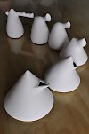 The basis for Ongay-Perez’s designs is her investigation into the properties and qualities of medium and material. In Icon-Fusion, she explores the potential of 3D printing, not as a mode of production but rather as a tool to appropriate the excessive amount of visual data available via online platforms such as Pinterest and Thingiverse. At a time when objects are defined more by their iconography than their use value, Ongay-Perez critically explores the importance of appropriating such data for generating form. Her studies of domestic objects led her to develop an app that generates teapots based on existing items, ranging from iconic designs to graphic representations of physical objects. Icon-Fusion is a digital tool that translates objects into abstract point clouds, allowing the user to morph between two distinct forms and pause the process to create a seemingly infinite number of intermediary hybrids. The app allows its users to speculate on the emergence of a new generation of derivative works based on iconic twentieth-century designs.
